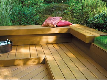 木塑户外地板由于具有抗撞击、耐磨损、防腐防蛀、防水性好、不易变形、维护简单等特点,可广泛用在栈道、广场、庭院、公园、会所、住宅小区、船坞码头等,铺装而成的景观,耐水防腐,使用年限是普通木材的3-10倍。